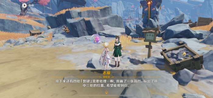 破坏磐键后,跟志琼对话后,告知有四处磐键需要处理,并获得「磐键」位置示意图