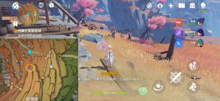 对话告知,需要找寻「流明触媒」,前往南边的仓库获取,出现盗宝团,击败他们