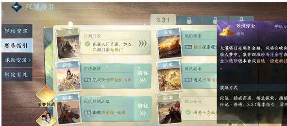 6、最后一个就是在游历的风雅宋中,完成对应任务就可以领取一个砂海浮金