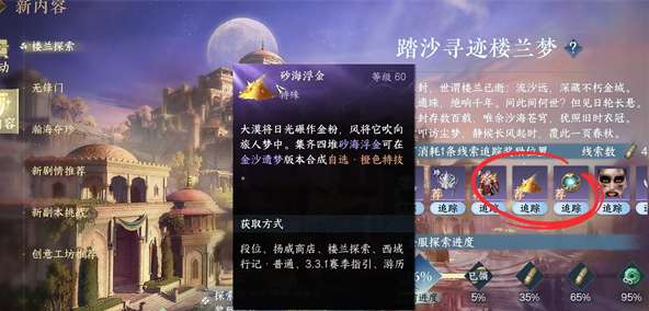 总结:玩家一共可以获取到6个【砂海浮金】,只需要4个就可以加工成自选金打造,玩家可以选择简单的获取方法获取,也可以选择全获取。