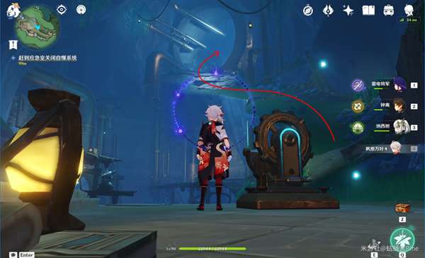 9,退出控制拿出「曲线」的核心,放入控制台,之后顺着北边上坡崖壁离开洞窟,顺着洋流前进