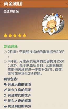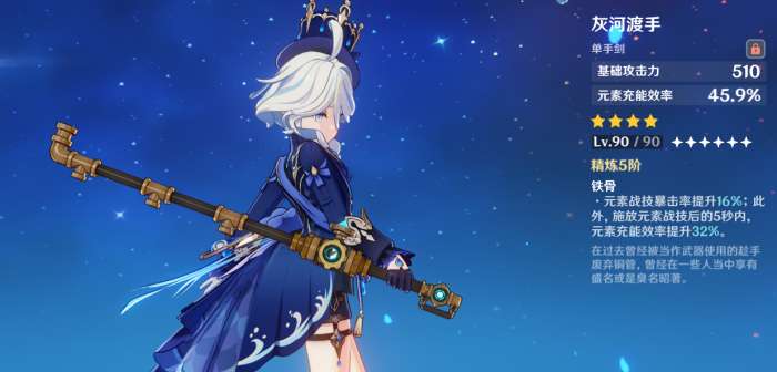 武器90级精5灰河渡手;圣遗物4黄金剧团套;天赋1/6/9