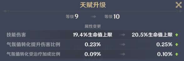 满级的天赋能够给全队增加最高达到75%的伤害加成,每次进攻都会增加0.25%的增伤效果,但不可能一次性全部提升到最大,需要像夜兰的增伤天赋一样逐步提升;如果重新开启天赋,则之前所有的增益效果都会消失。