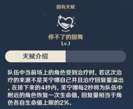 奶量溢出给全队小回,算是小利于单体奶组队,其他情况没有用处,自己居然触发不了自己的天赋也挺奇怪的,数值也给的很少不像是个固有天赋,隔壁行秋更平不是都能奶一小管,是个凑数的吗?