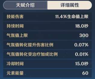 这是一个持续时间为18秒、冷却时间为15秒的技能,可以无限使用。它会根据队伍中所有角色的血量变化而堆叠层数,每1%的血量变化增加1层,直到最高300层。它不仅可以为自己提供增伤效果,还可以为整个队伍提供增伤效果,包括自己。注意,这不是纳西妲夜兰的技能。
