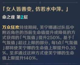 虽然充能和群等功能都能得到解决,但是绑定奶妈是芙宁娜最大的缺陷。另外,芙宁娜只能适配一个角色,这相当于是专门为某个角色服务,虽然后台角色的寿命更长,但只绑定某一个角色是否会严重压缩其通用性呢?
