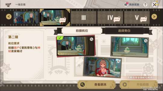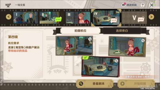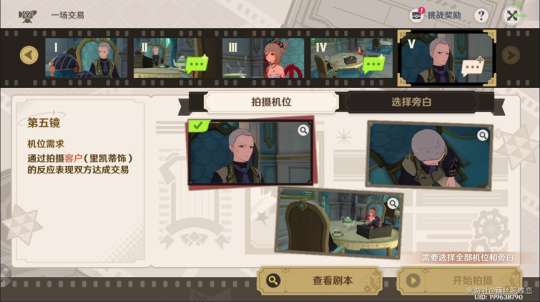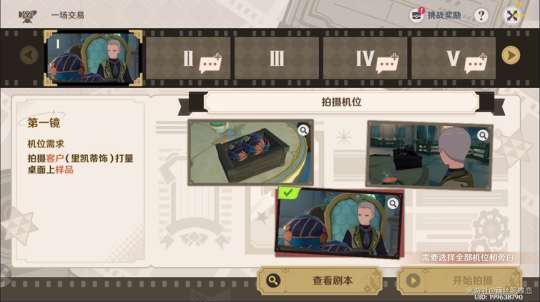 在【巧像入帧】的游戏中,需要根据导演的各项需求拍摄多个镜头,将它们组合成一段映影。拍摄时,首先需要确认机位需求,选择合适的拍摄机位。