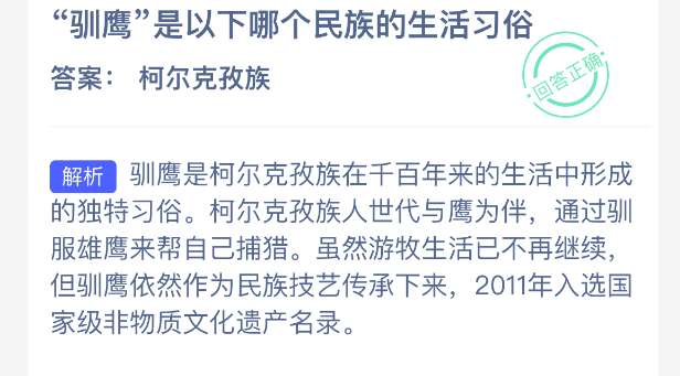软件提交 专题合集 热门手游“驯鹰”是以下哪个民族的生活习俗?【蚂蚁新村每日一题】2026年2月11日题目已发布!坚持答题,积累木兰币,即可加速小镇建设。答对本题,立即可享“产速+3/时”的加速奖励!今天正确答案是【柯尔克孜族】。驯鹰是柯尔克孜族在千百年来的生活中形成的独特习俗。