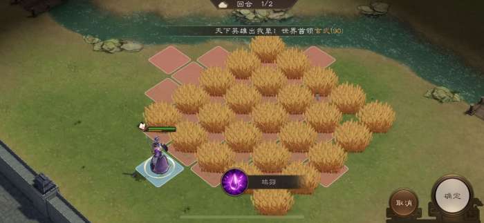 这里很简单,也很有意思,如果你第一次直接选择中心位来释放技能,恭喜你,掉进陷阱啦。李儒的攻击范围刚好是够不到四个角的。