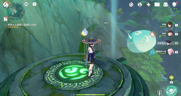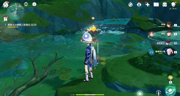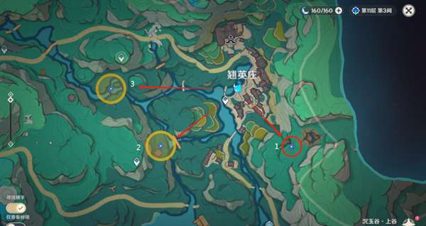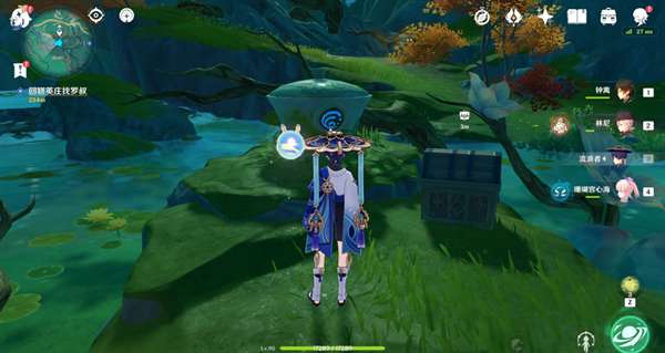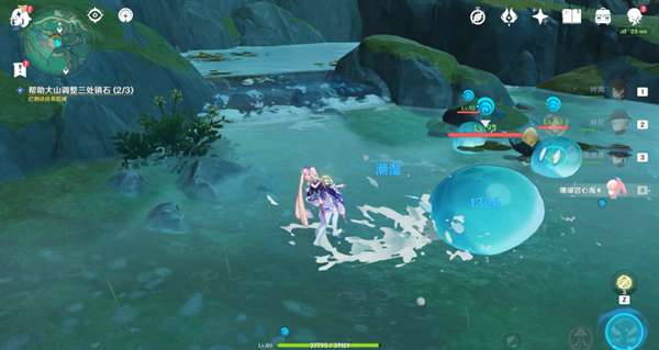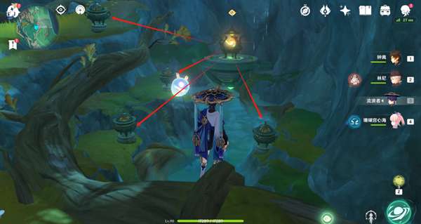 1.来到第三处位置,与水机关交互,然后调查机关下方的莲花灯(有水波纹),会出现3个水史莱姆
