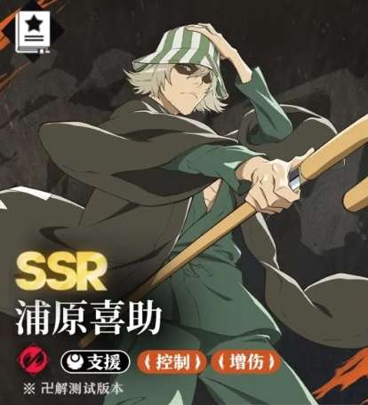 浦原喜助的外貌极具辨识度,浅黄色的短发显得朝气蓬勃,头上始终戴着一顶绿白相间的渔夫帽,平日里总是爱开玩笑,在游戏中这个角色常用的武器是手持的一把双面刃拐杖刀,当始解启动后,这把武器瞬间变成一把斩魂刀,刀柄上方会浮现出精致的护甲装饰,视觉效果震撼,作为SSR级别的支援型角色,浦原喜助的实力不容小觑。