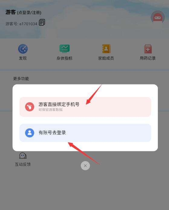 3、已有账号可直接登录,没有账号可点游客直接绑定手机号
