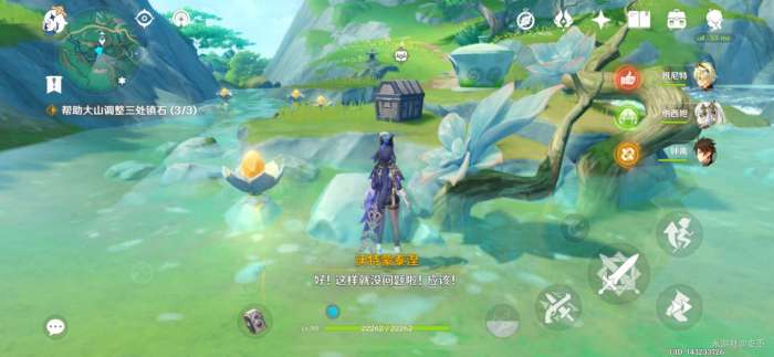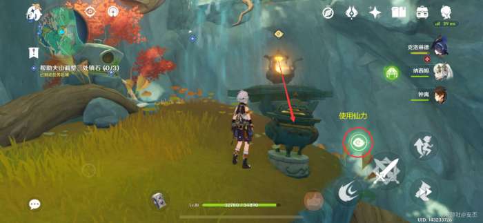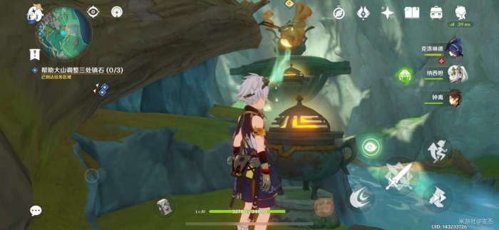 来到凉亭前的茶壶旁,交互“与镇石共鸣”,开启挑战,产生风场