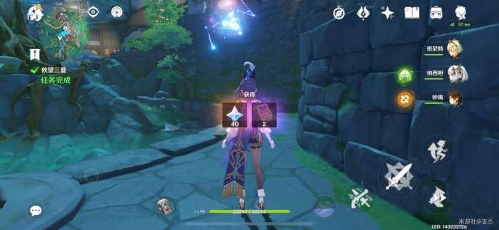 对话结束,任务完成,获得40原石奖励