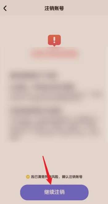在注销账号页面,点击下方继续注销即可。