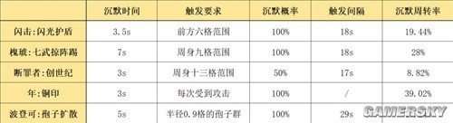 范围沉默是闪击干员的第二重控制能力之一,可以让特殊能力失效。目前游戏中有越来越多干员具有沉默能力,但需要区分“能主动释放的可控沉默”和“范围沉默”这两类能力,而闪击干员恰好拥有这两种能力。因此,我们将比较槐琥的“七武掠阵踢”、断罪者的“创世纪”、年的“铜印”、波登可的“孢子扩散”技能。