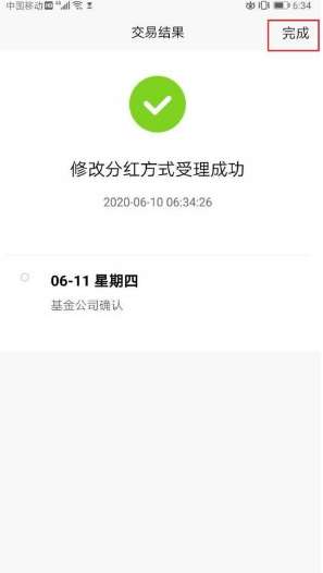 6、可以选择现金分红或红利再投资,选定后,右侧会有红色小勾出现,点击”确认“