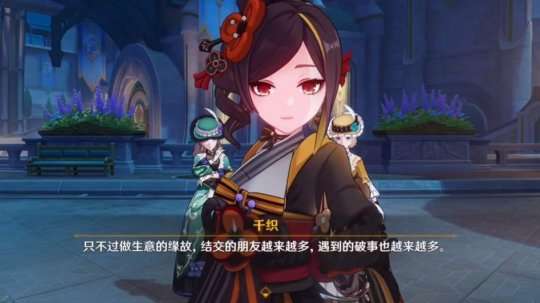 作为4.5版本登场角色,近期剧情虽有出场,但要说多么了解也谈不上。毕竟千织人设比较高冷,较少话语很难分析出什么,更多时候大家只是在赏析她那时尚、亮眼的外貌,期待未来版本能够交出让旅行者们满意的答卷~