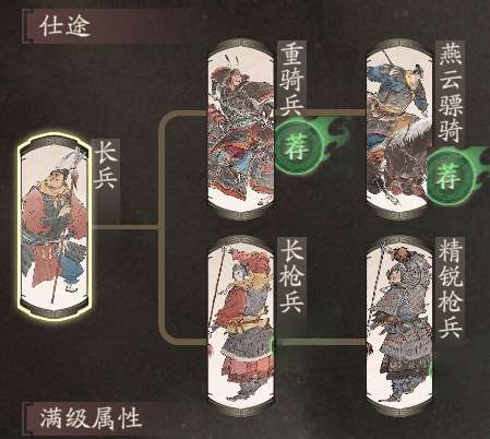 推荐走上路的骑兵线,前期敌人数据不高吼就好了,高级骑兵同样具有2格直线攻击能力,各方面碾压了长兵职业。当然交一个龙骧之印拿<万人敌>2阶是必须的。
