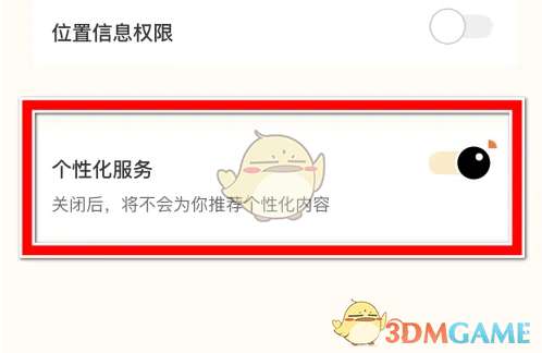 4、关闭按钮,即可禁止推荐个性化内容。