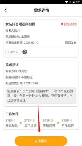 2、点击下方的立即报名按钮即可报名订单