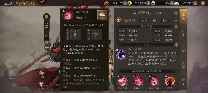 软件提交 专题合集 热门手游本次给大家带来了新三国志曹操传吕布技能属性武器介绍!强度评级:T0级物理极致输出、BOSS绞肉机、清场核心。核心机制:极致无视防御、最大生命值真伤、击杀混乱控制。神器优先级:4星质变(击杀回怒),5星完全体(暴击几率大幅提升)。