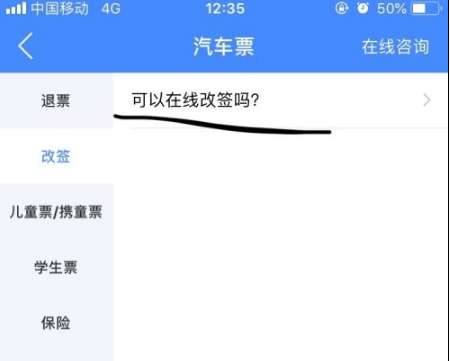 6.点击打开之后,在跳出的对话框中,点击可以在线改签吗?