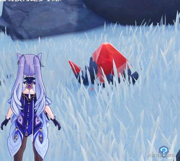 然后最重要的一点,雪山内的冰很多都是无法融化的,比如要在周围找到这种矿“忘了叫啥了突然”击碎之后身上会有红色的特效,