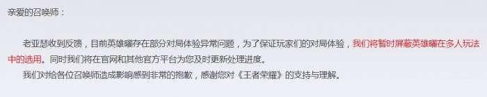 大家不要着急,这个是官方为了修复一个bug而进行的英雄屏蔽。