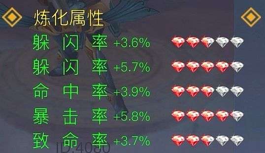 基础装备在30级后可以炼化洗出暴击率、致命率、命中率、躲闪率、反击率、速度等强力属性。(躲闪率上限70%) ;
