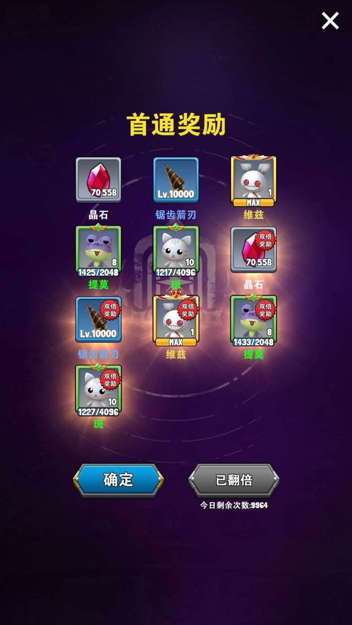 新的冒险次数 文物数量 文物升级 首刷宠物 复刷钻石 钻石次数 加速时间 还有啥我好像忘了。