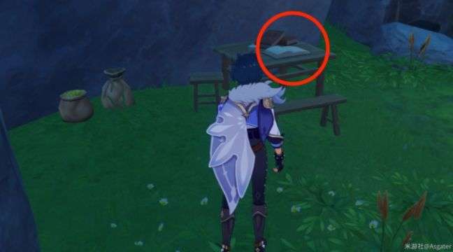 进入所标记的洞内,然后攻击洞内的可破坏岩石之后就能看到一处桌子,桌子上有一本书。