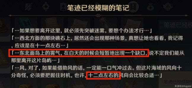 2、根据笔记内容在到达标记2处的小岛之后将时间调整至中午12点既可以通过风向的指示(海面上存在的白色条纹)抵达东北处的无名小岛。