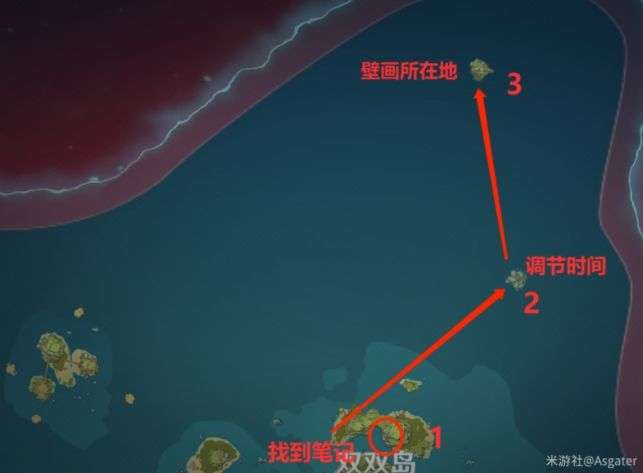 抵达岛屿之后登上顶端即可发现壁画,并且观察壁画之后,也完成了该任务。