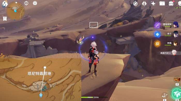 传送塔尼特露营地神像,往地图的东北方向走,利用四叶印,前往图中指引遗迹入口