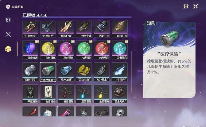 4、下面这个buff一定要拿(告诉我们买医疗险很重要),到无尽波次后期面对四五个boss的围殴,你凭着血量能够硬抗了,越早拿越好,其他增加血量的道具拿不拿皆可,反正生命值堆到1000足够了。