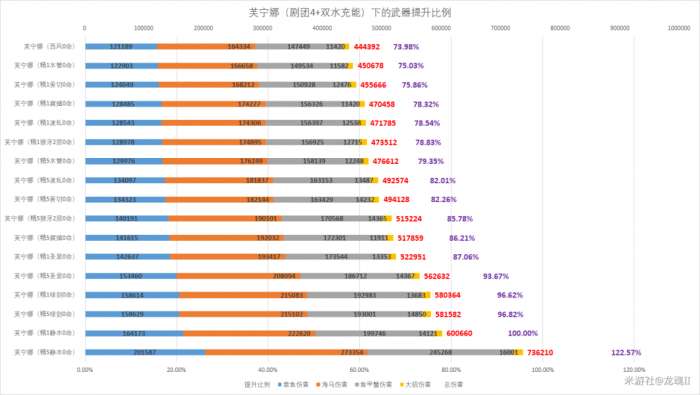 由于芙宁娜的增伤本身已经比较高了,所以在组队和单人情况下,武器伤害的变化差距不大。