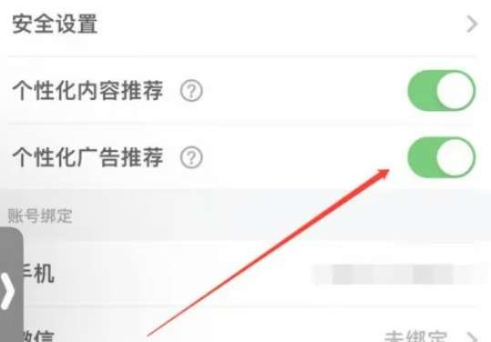 进入设置后关闭【个人性广告推荐】右侧开关即可