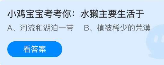 1、小鸡宝宝考考你:水獭主要生活于
