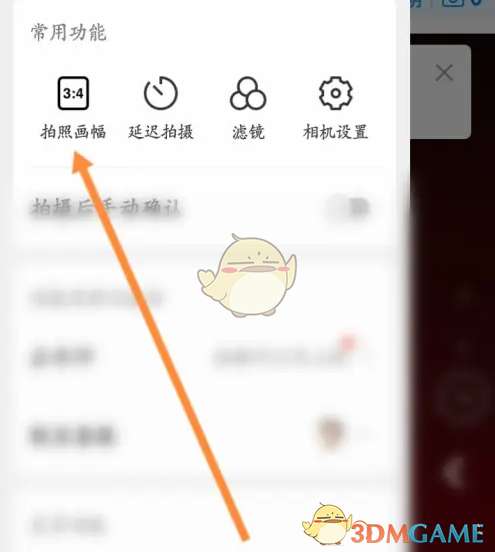 2、点击上面的拍照画幅选项。