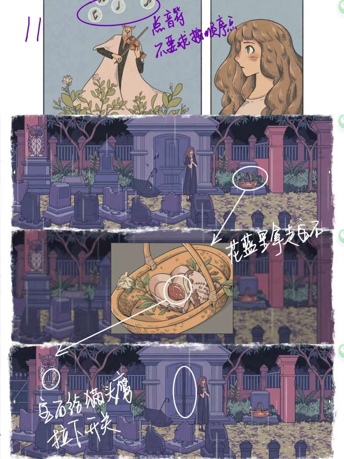图11: 点击音符,随便点,点完就行 点击大门右边的花篮 花篮里拿走宝石 宝石放到猫头鹰雕像的眼睛里,拉下开关,大门打开,点击大门进入