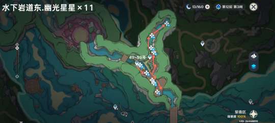 1、翡翠区的七天神像下来后往东边对岸的限时挑战处滑翔过去