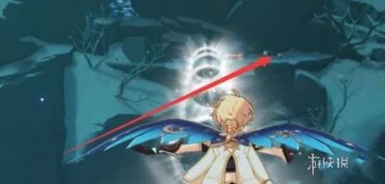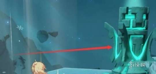 请按照箭头指示移动到图中的位置,并使用风元素技能激活元素方碑。