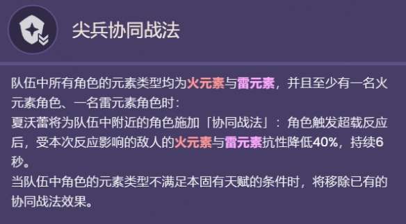 夏沃蕾将在队伍中附近的角色触发超载反应时获得1枚「超量装药弹头」。至多同时持有1枚「超量装药弹头」。