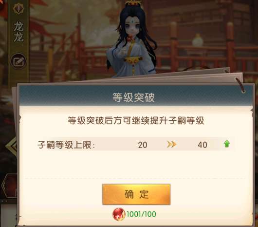 提升等级需要子嗣经验并且当达到一定等级后需要等级突破丹进行突破后才可以继续升级。