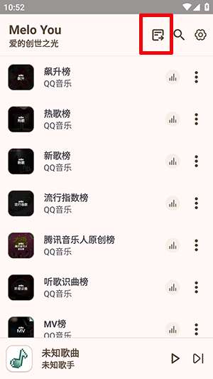 5、点完下载按钮后,MeloYou音乐会自动开始保存文件。想管理本地资源的话,回到首页点击搜索框旁的小图标,就能进入自定义歌单专区,里面的下载管理入口非常显眼。