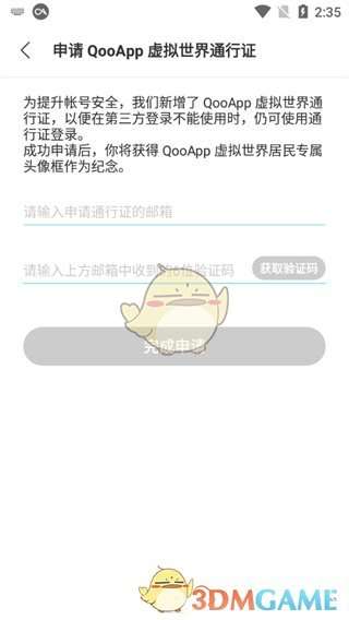 2、然后点击过后游客登录之后就会跳转到申请qoo APP虚拟世界通行证,我们可以点击左上角的按钮返回到主页面;也可以申请qooapp虚拟世界通行证;
