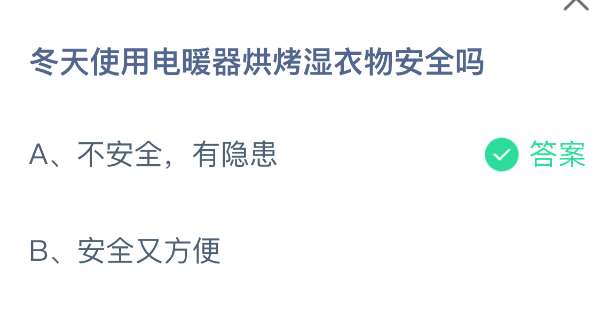 以上就是冬天使用电暖器烘烤湿衣物安全吗?支付宝蚂蚁庄园2026年2月2日答案最新,更多相关攻略,请关注pk游戏网更新!