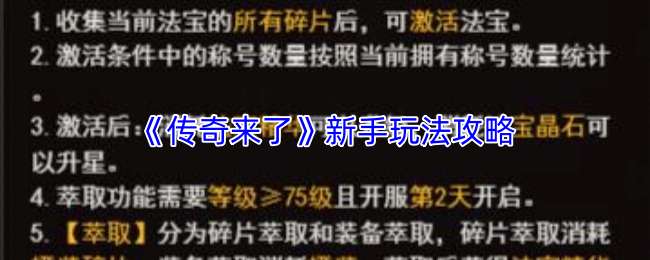 传奇来了法宝怎么玩,传奇来了法宝有什么作用? 下面我就给大家介绍一下: