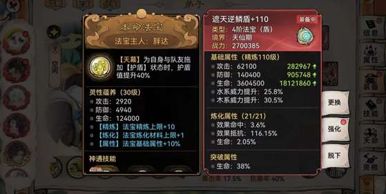 现在该来说说看我们的黑科技了,套盾流熊猫法宝选择只有一个,那就是带鳞的遮天盾胚。(推荐四阶水麟+三阶藤进行制作,炼化全部效果抵抗)